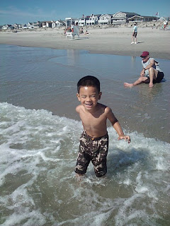 Later that morning, our friends from our neighborhood arrived, unpacked, and quickly joined us on the beach. Their three kids and our two proceeded to get into all manner of fun activities, from splashing around in the water to digging big holes to eating the roast beef sandwiches I had made.
